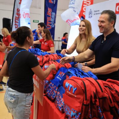 Entrega Adrián de la Garza útiles, útiles en el Parque Aztlán