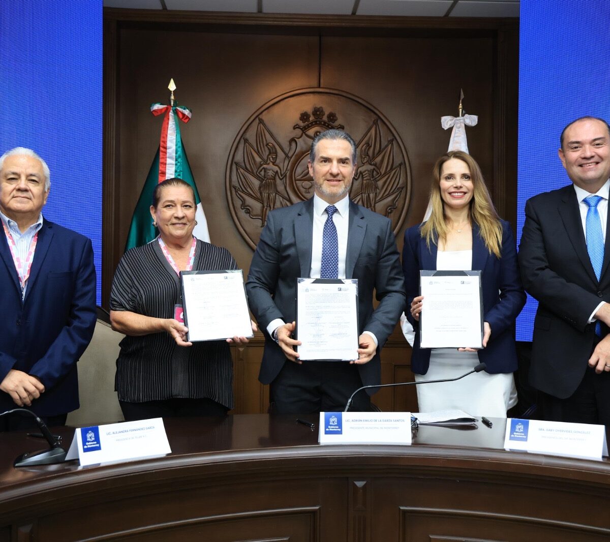 Durante la firma estuvieron presentes Hugo Camacho, director de Telar; Gaby Oyervidez, presidenta del DIF de Monterrey; Fernando Margáin, jefe del Gabinete; y los secretarios Marcelo Segovia, Ximena Tamariz y Karina Barrón, de Administración, Desarrollo Económico y Desarrollo Social respectivamente.