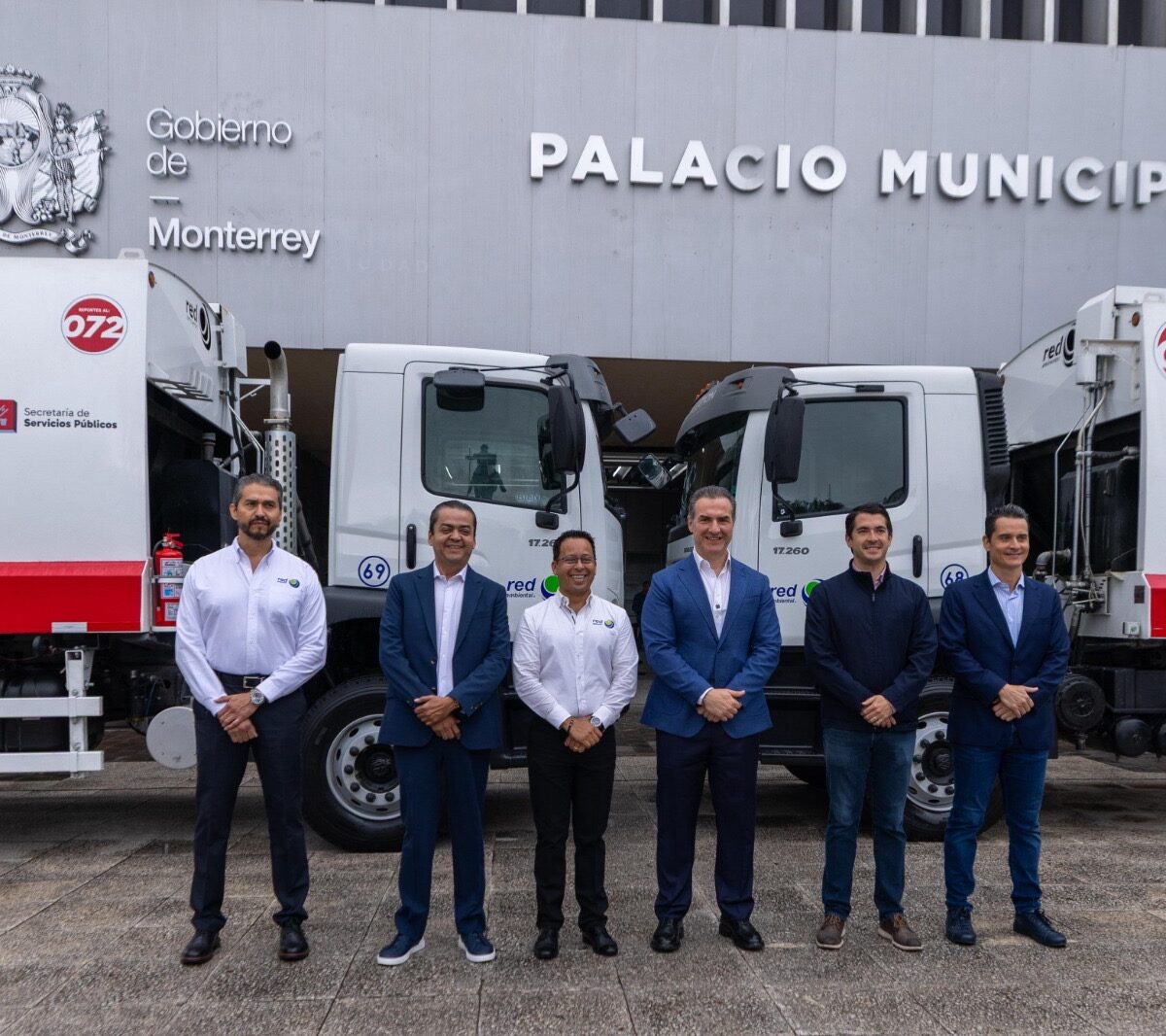 El alcalde de Monterrey, Adrián de la Garza, realizó la incorporación simbólica de cuatro camiones recolectores a la flotilla de Red Recollector, empresa encargada del retiro de basura domiciliaria en la ciudad.