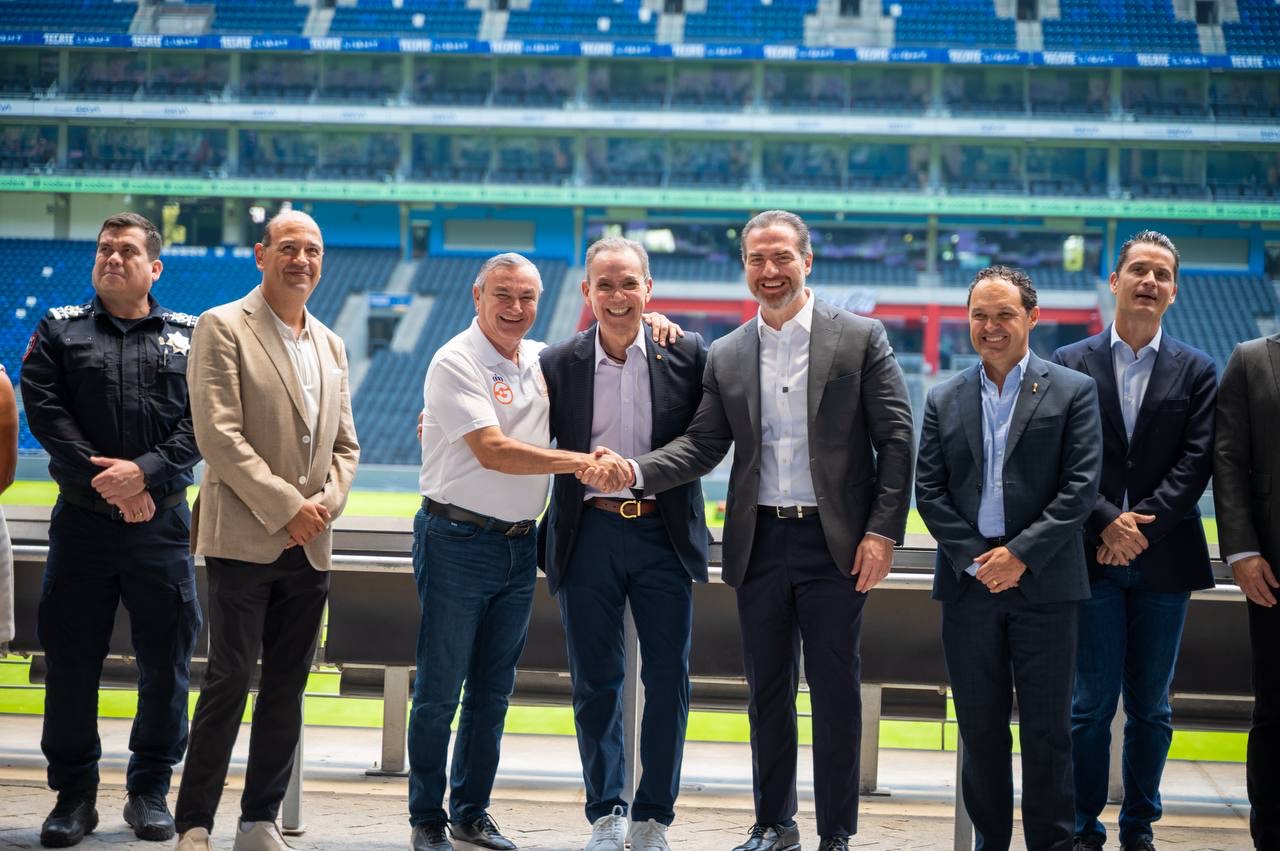 El alcalde de Monterrey, Adrián de la Garza Santos acudió este viernes a una nueva reunión con integrantes del Comité Organizador de la Copa Mundial FIFA 2026 en el estadio BBVA.