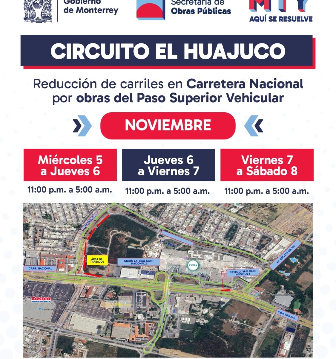 Hoy 5 de noviembre, así como el jueves 6 y el viernes 7, de 11 de la noche a 5 de la mañana se impedirá el tránsito vehicular en el carril lateral por el montaje de trabes.