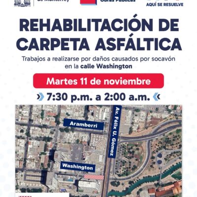 Con el objetivo de concluir la reparación del hundimiento en la calle Washington, casi en su cruce con Félix U.