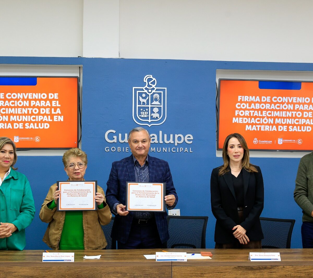 Para tal fin, el Gobierno de Guadalupe firmó un convenio de colaboración con la titular de la COESAMED, Rosa María Díaz, para fortalecer el Centro de mediación municipal en materia de salud.