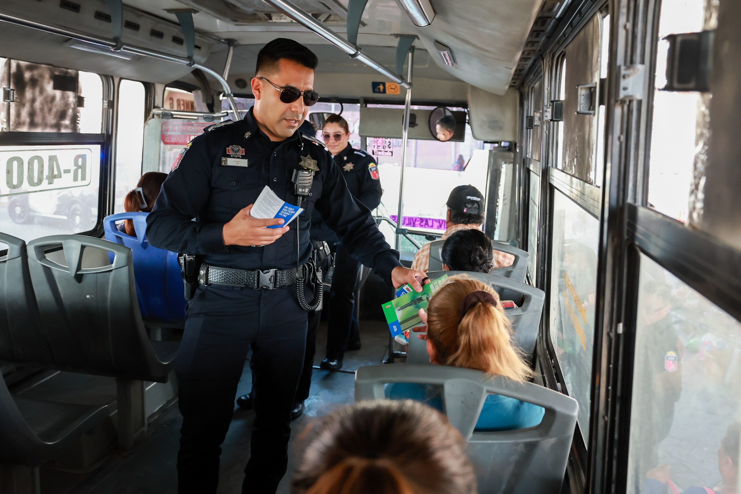 Los elementos entregaron a usuarios del transporte público y automovilistas trípticos con recomendaciones para prevenir robos y difundieron el número telefónico del C4,