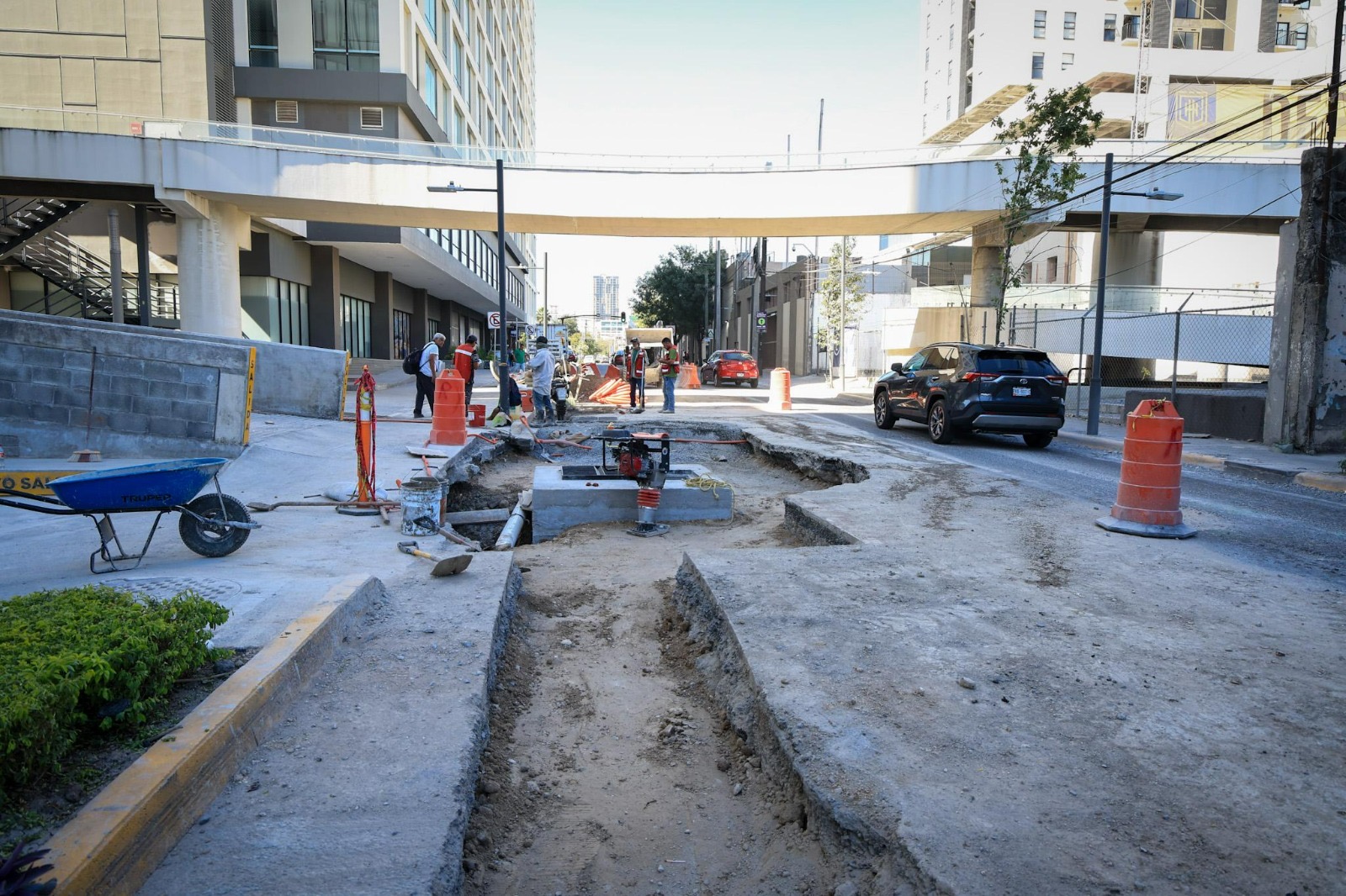 Una vez que el particular propietario de un edificio aledaño construyó un colector de lluvia y la paraestatal Agua y Drenaje de Monterrey intervino para reparar el pluvial dañado, el Gobierno de la ciudad pudo avanzar en la remediación del hundimiento registrado en la calle Washington, casi esquina con Félix U. Gómez.