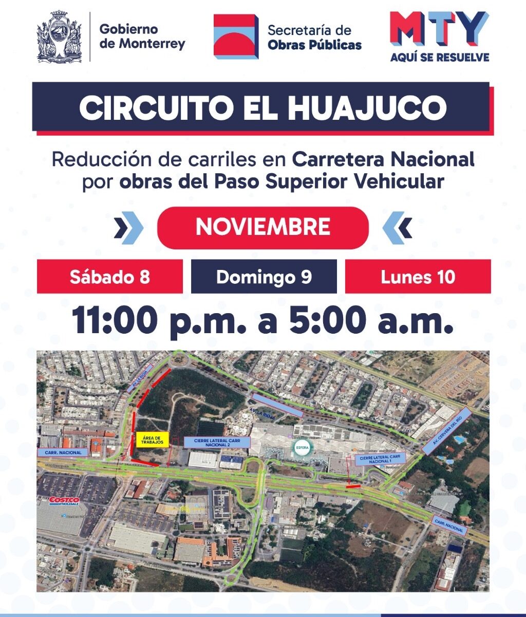 Para avanzar en la construcción del Circuito Vial del Huajuco, que incluye un puente elevado, el Gobierno de la ciudad limitará la circulación vehicular en el carril lateral de sur a norte a la altura de la Rioja por la Carretera Nacional.